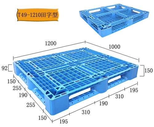 產(chǎn)品型號(hào): HD-1210TW2 產(chǎn)品貨號(hào): T49 產(chǎn)品外尺寸: 1200×1000×150 產(chǎn)品內(nèi)尺寸: 產(chǎn)品結(jié)構(gòu): 單面網(wǎng)格 產(chǎn)品內(nèi)容量(L): 承重量(T): 動(dòng)載:1T 靜載:4T 貨架:0.6T 該塑料托盤適合平地墊倉(cāng)、碼垛和上貨架使用;