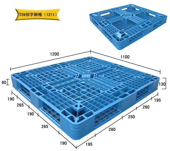 產(chǎn)品型號(hào): HD-1211TW2產(chǎn)品貨號(hào): T39 產(chǎn)品外尺寸: 1200×1100×130 產(chǎn)品內(nèi)尺寸: 產(chǎn)品結(jié)構(gòu): 田字網(wǎng)格 產(chǎn)品內(nèi)容量(L): 承重量(T): 動(dòng)載:1T 靜載:4T 貨架0.4T 此款塑料托盤(pán)適合平地墊倉(cāng),在貨架上或碼垛使用;