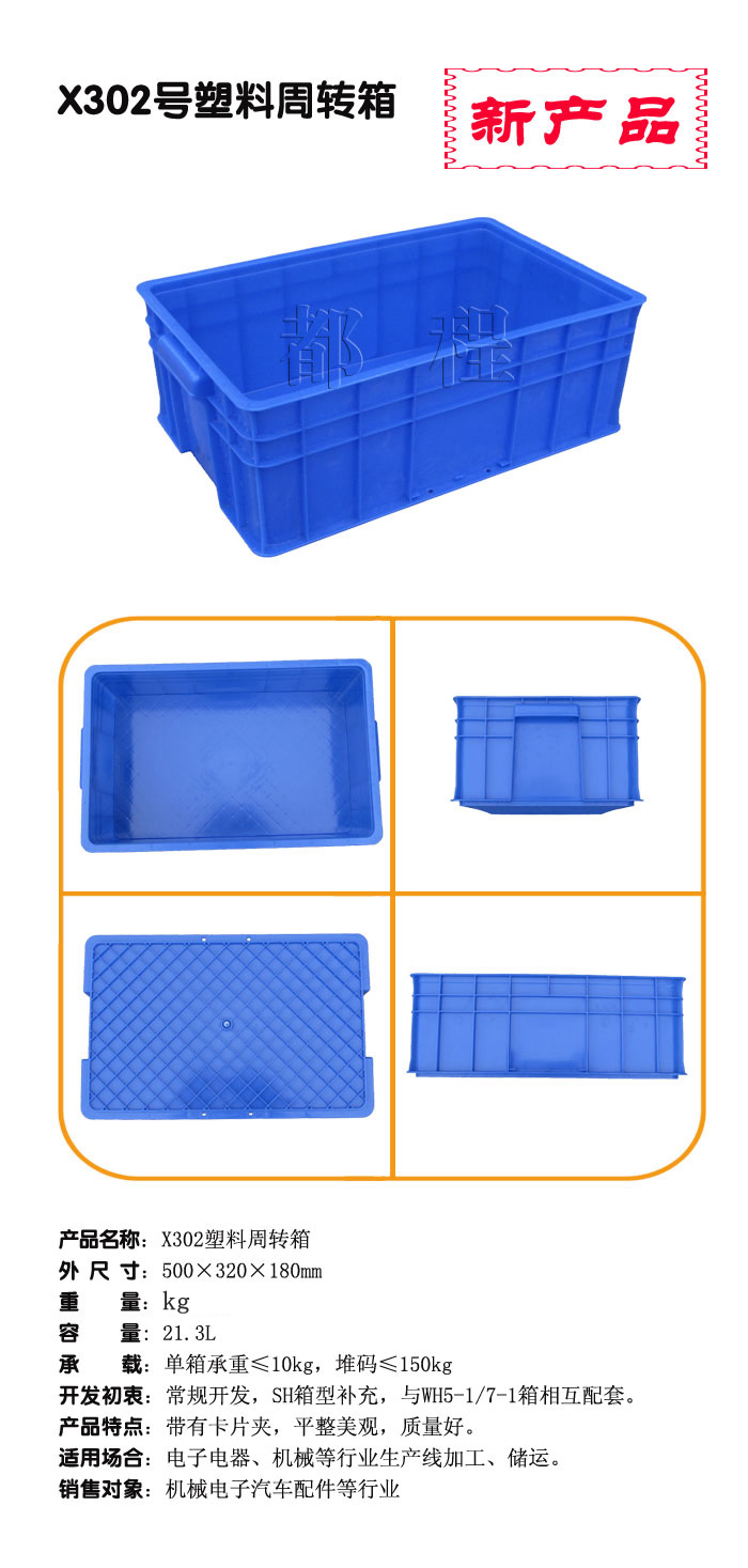 編號: X302 外尺寸(mm): 500*320*180 內(nèi)尺寸(mm): 473*292*170 內(nèi)容積(L): 21.3 備注: SH箱型補(bǔ)充開發(fā),與WH5-1/7-1箱相互配套,帶有卡片夾,平整美觀,適用于電子電器、機(jī)械等行業(yè)產(chǎn)線加工、儲運(yùn)。